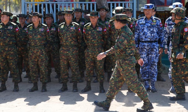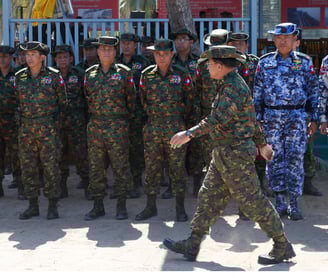 写真:2018年にエーヤワディ地方で行われた「白象作戦」訓練での軍司令官の様子。